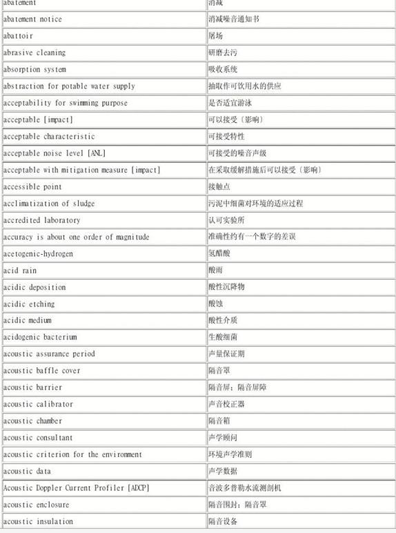 水處理給排水英語(yǔ)專(zhuān)業(yè)詞匯表