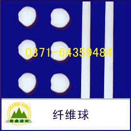 纖維球是以纖維球直徑的長度為節(jié)距,用細(xì)繩將纖維絲束扎起來,在扎接中間的中央處切斷纖維絲束,形成大小一致的球狀纖維濾料。特點是彈性好、耐機(jī)械變形。